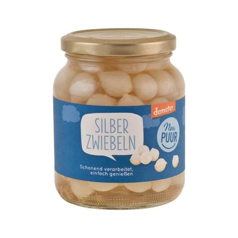 Ingrédients: oignons grelots**, eau, vinaigre d'alcool*, sirop d'agave*, sel de mer, graines de moutarde jaune*.