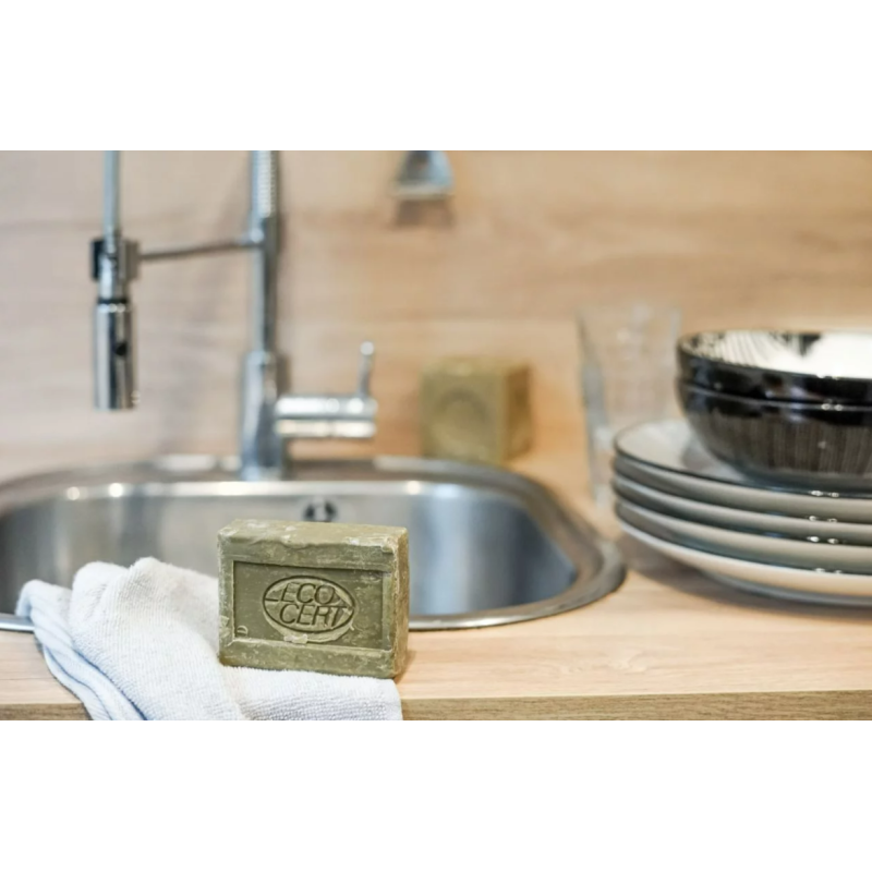 Un savon vaisselle solide 100% naturel qui lave, dégraisse et fait briller la vaisselle ! Il est fabriqué à partir de savon de Marseille Olive cuit au chaudron, enrichi en Bicarbonate de Soude pour une vaisselle parfaitement propre et en Aloe Vera bio pour préserver les mains.