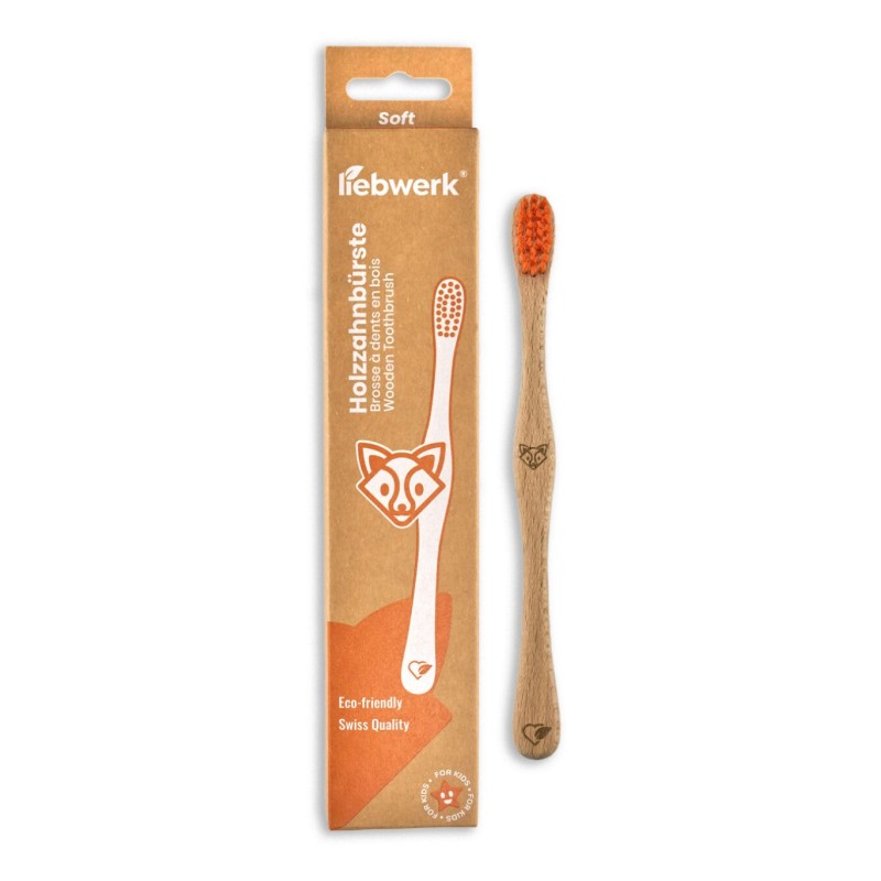 Avec ses poils colorés et ses gravures attrayantes d'animaux, la brosse à dents en bois KIDS rend le brossage des dents amusant pour les plus jeunes.