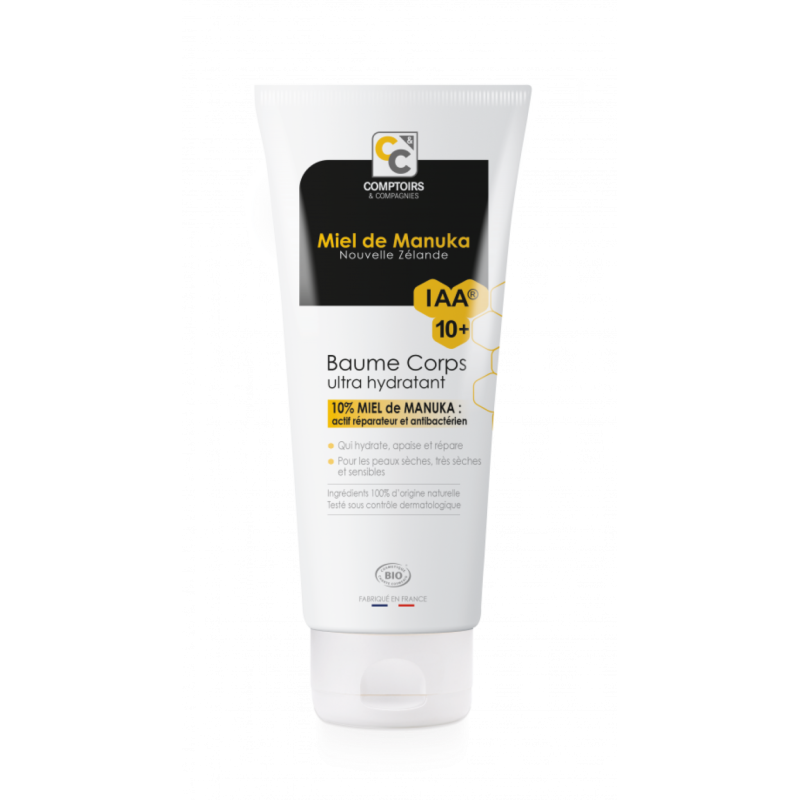 Nourrissez votre peau sèche et soulagez les sensations de tiraillement avec ce baume corporel au miel de Manuka IAA10+.